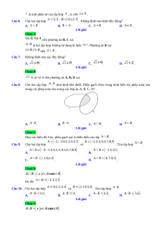 Câu 7. Khẳng định nào sau đây đúng? A. . B. . C. . D. . Câu 8. Cho hai tập hợp