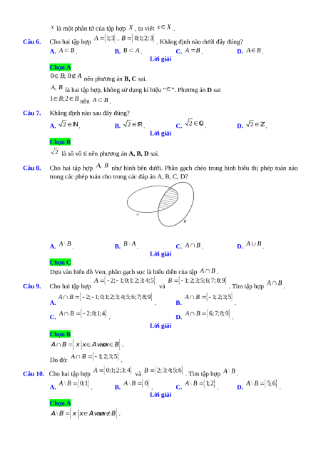 trong các phép toán cho trong các đáp án A, B, C, D? A. . B. . C. . D. . Câu 9. Cho hai tập hợp và . Tìm tập hợp . A. . B. . C. . D. .