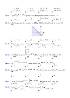 , điểm nào sau đây thuộc miền nghiệm của hệ? A. B. C. D. Câu 19. Cho