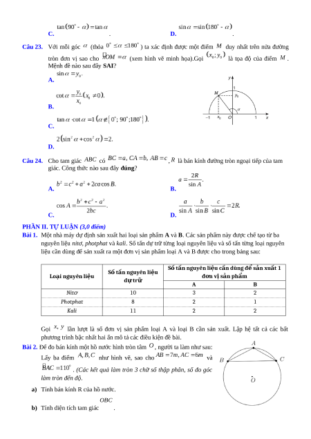 , giá trị của biểu thức là A. B. C. D. Câu 20. Cho tam giác có