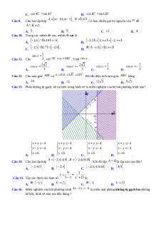 Câu 2. Điểm nào dưới đây không thuộc miền nghiệm của bất phương trình A. B. C. D. Câu 3. Cho tam giác có , cạnh