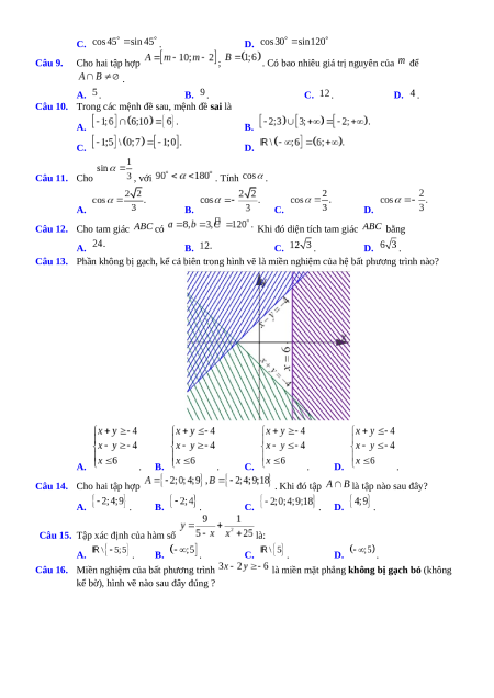 Câu 10. Trong các mệnh đề sau, mệnh đề sai là A. B. C. D. Câu 11. Cho , với . Tính . A. B. C. D. Câu 12. Cho tam giác có