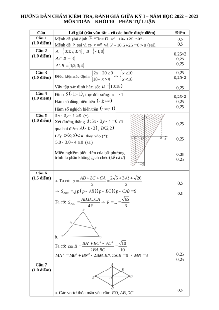(1,0 điểm) Mệnh đề sai vì có và (sai). 0,5 Câu 2 , (1,0 điểm) 0,25×2 0,25 0,25 Câu 3 0,25