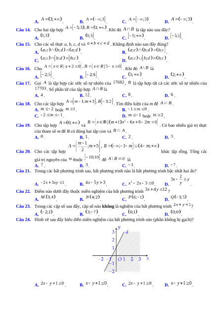 Câu 14. Cho hai tập hợp . Khi đó là tập nào sau đây? A. . B. . C. . D. .