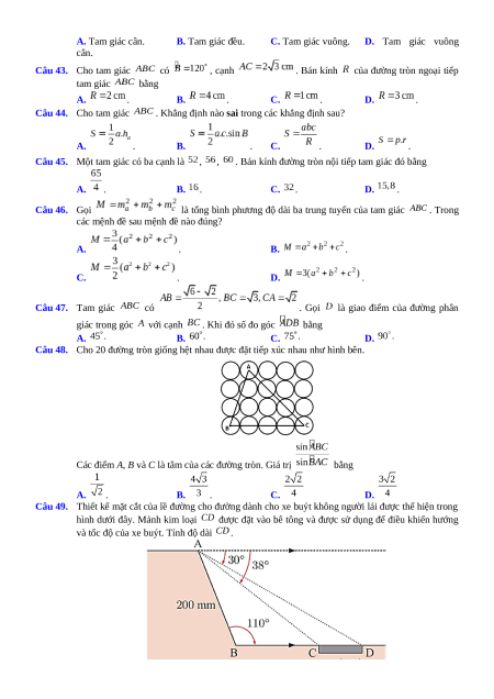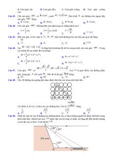 và bán kính đường tròn ngoại tiếp tam giác là . Tính số đo góc . A. . B. . C. . D. . Câu 42. Cho tam giác