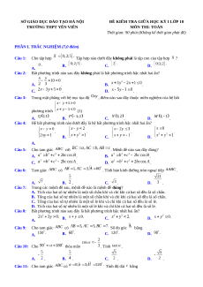 TRƯỜNG THPT YÊN VIÊN MÔN THI: TOÁN