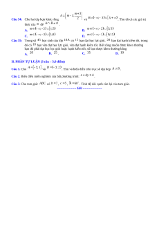 , điểm nào sau đây thuộc miền nghiệm của hệ bất phương trình (1) A. . B. . C. . D. . Câu 4:
