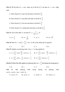 Câu 12. Đồ thị hàm số y sin x được suy từ đồ thị C của hàm số y cos x bằng cách:
