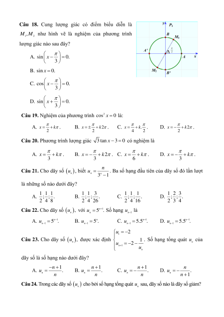 Câu 18. Cung lượng giác có điểm biểu diễn là