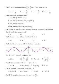 Câu 5. Cho góc thỏa mãn 12 sin và