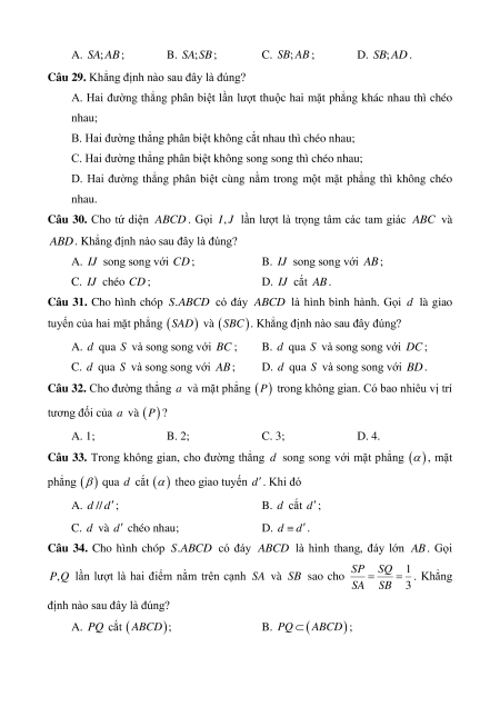 Câu 28. Cho hình chóp S.ABCD có đáy ABCD là hình bình hành. Hỏi cạnh CD