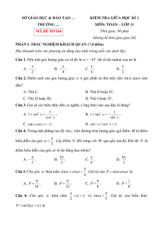 MÔN: TOÁN – LỚP 11 MÃ ĐỀ MT104 Thời gian: 90 phút