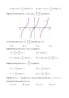 Câu 15. Phương trình 3 cot 3x có nghiệm là 3 A. x k , k ; B. x k , k ; 3 9 C. x k2 , k ; D. x k ,k . 9 9 3 Câu 16. Với * n