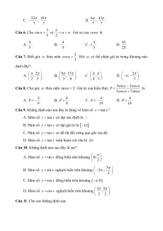 đầu, tia cuối với góc đã cho? A. 29 41 ; . B. 29 22 ; . 7 7 7 7 C. 22 41 ; . D. 6 41 ; . 7 7 7 7 Câu 6. Cho 3 sin