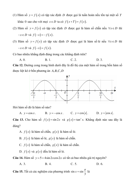 (1) Hàm số y f x có tập xác định D được gọi là tuần hoàn nếu tồn tại một số T