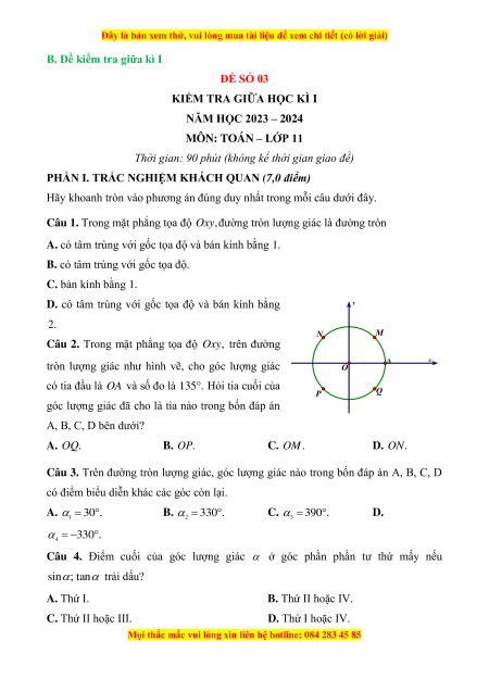 B. Đề kiểm tra giữa kì I ĐỀ SỐ 03