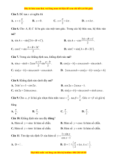 Câu 5. Để tan x có nghĩa thì A. x . B. x 0 . C. x k .