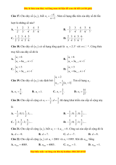 Câu 18. Cho dãy số u có số hạng tổng quát là u 2.3n với n *. Công thức n n