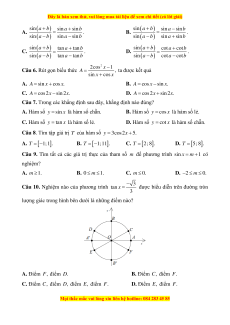 Câu 6. Rút gọn biểu thức A , ta được kết quả sin x cos x