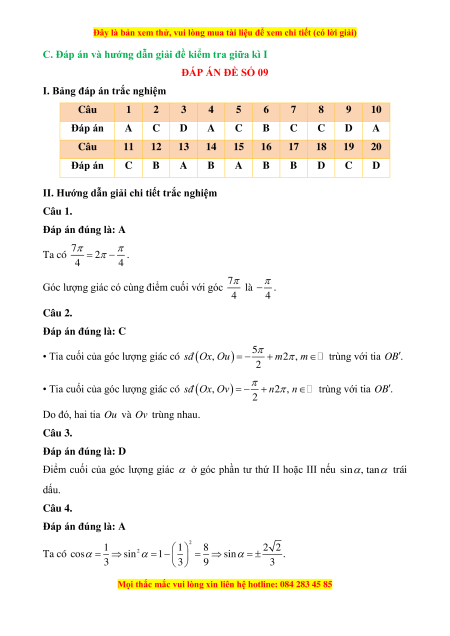 B. Đề kiểm tra giữa kì I ĐỀ SỐ 09