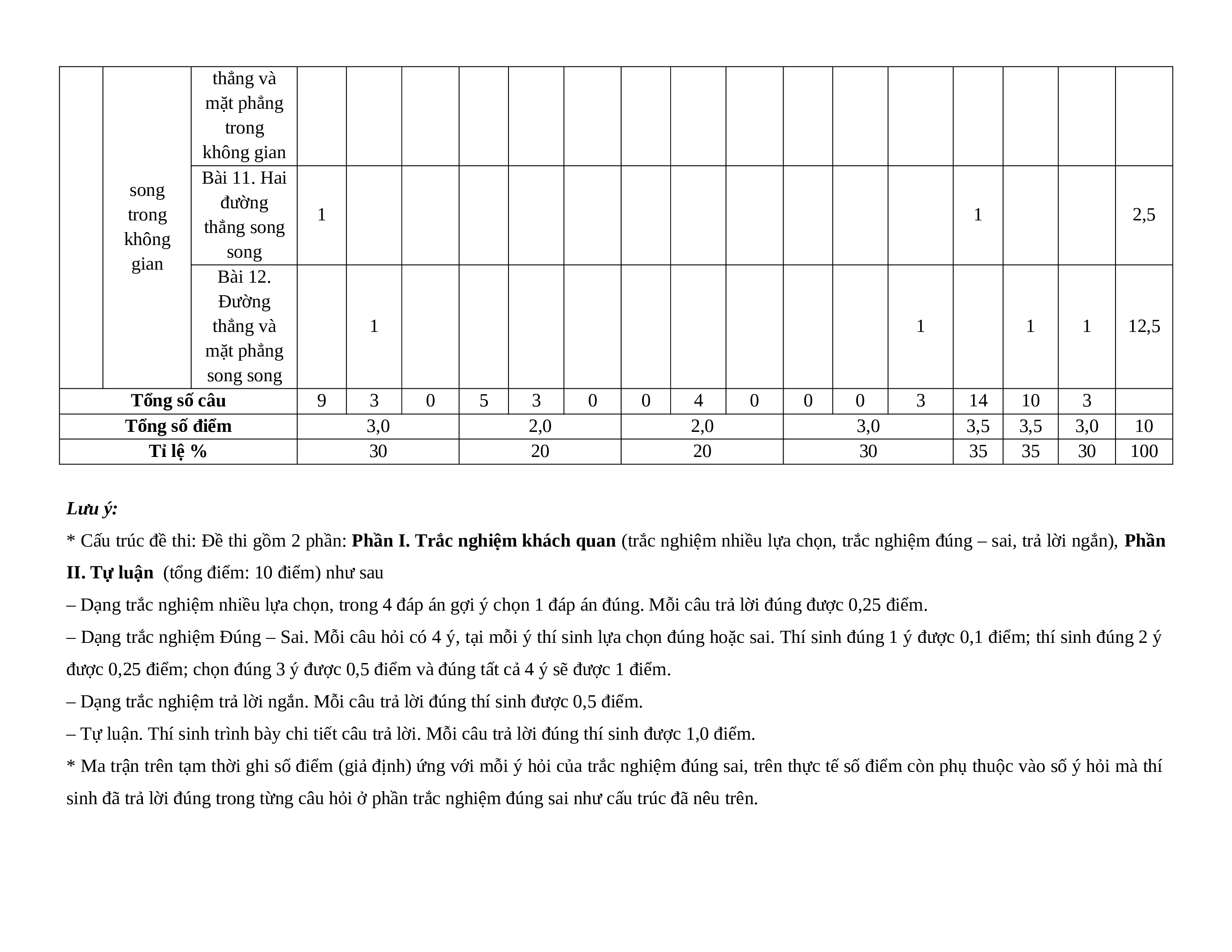 * Ma trận trên tạm thời ghi số điểm (giả định) ứng với mỗi ý hỏi của trắc nghiệm đúng sai, trên thực tế số điểm còn phụ thuộc vào số ý hỏi mà thí