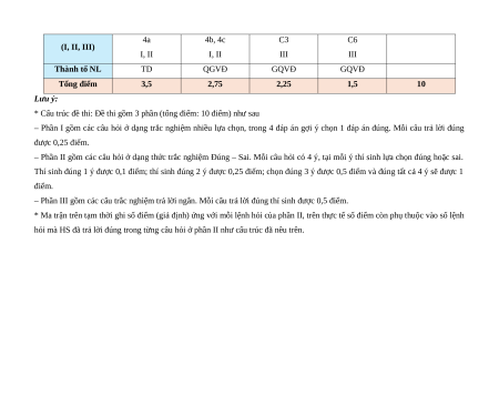* Cấu trúc đề thi: Đề thi gồm 3 phần (tổng điểm: 10 điểm) như sau