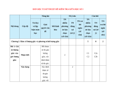 Chương I. Hàm số lượng giác và phương trình lượng giác Số lệnh hỏi 6 5 3 1 15 Số điểm 1,5 1,25 1 0,5 4,25 1,2,3,4 5 2c, 2d Câu số/Phần 1a, 2a 1b, 1c, 1d, 2b C1 C4 (I, II, III) I, II I, II II, III III Thành tố NL TD TD, QGVĐ GQVĐ MHH