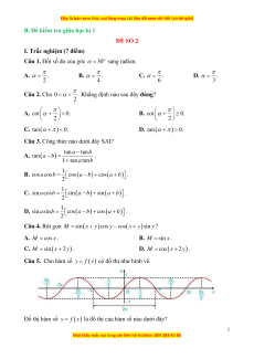 Câu 1. Đổi số đo của góc 30 sang rađian. A. . B. . C. . D. . 2 4 6 3
