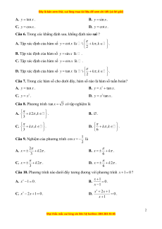 Câu 9. Nghiệm của phương trình 1 cos x là 2 2 A. x k2 . B. x k . 3 6 C. x k2 . D. x k2 . 3 6