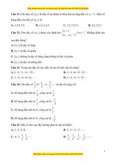 Câu 15. Dãy số nào sau đây không phải là cấp số nhân? A. 1; 2; 4; 8; . B. 2 3 4 3; 3 ; 3 ; 3 ; . 1 1 1 1 1 1 C. 4; 2; ; ; . D. ; ; ; ; 2 4 2 4 6 . 3