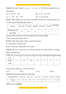 Câu 18. Điều tra về chiều cao của 100 học sinh lớp 10 trường THPT Lý Thường