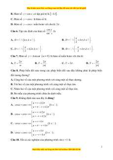 0 là hàm số tuần hoàn với chu kì 2 2 2 A. T . B. T . C. T 2 . D. T .