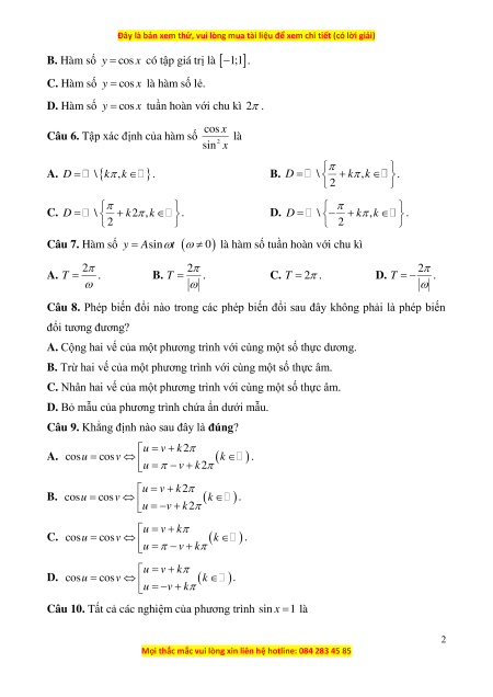 Câu 6. Tập xác định của hàm số là 2 sin x A. D