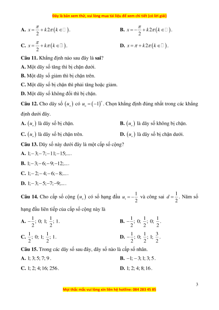 Câu 13. Dãy số này dưới đây là một cấp số cộng?