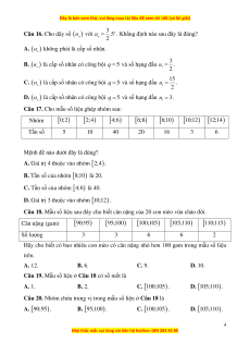 Câu 20. Nhóm chứa trung vị trong mẫu số liệu ở Câu 18 là A. 90;95 . B. 95;100 . C. 100;105 . D. 105;110 . 4