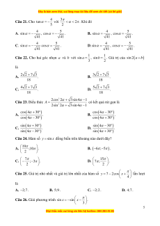 Câu 3. Chọn khẳng định đúng. a b a b A. a b tan tan tan a b 1 . B. tan tan tan tan a tan b 1 . tan a tan b a b a b C.