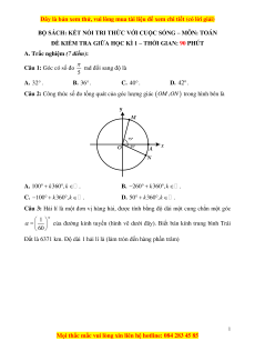 Câu 1: Góc có số đo rad đổi sang độ là 5 A. 32 . B. 36 . C. 40 . D. 42 .