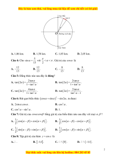 Câu 7: Giá trị của cos.cos bằng giá trị của biểu thức nào sau đây với mọi , ? 1 1 A.