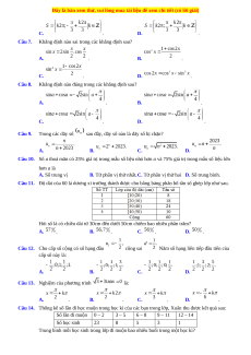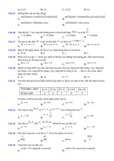 Câu 18. Mẫu số liệu ghép nhóm với tần số các nhóm bằng nhau có số mốt là A. Vô số B. 0 C. 1 D. 2