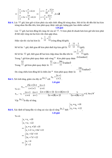 Bài 3. Giải các phương trình lượng giác sau: a) b) Lời giải a) b) Bài 4. Lúc