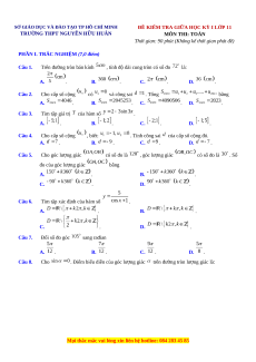 Đề thi giữa kì 1 Toán 11 trường THPT Nguyễn Hữu Huân - TP Hồ Chí Minh năm 2023-2024