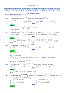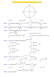 Câu 7. Đổi số đo góc sang rađian A. . B. . C. . D. . Câu 8. Cho