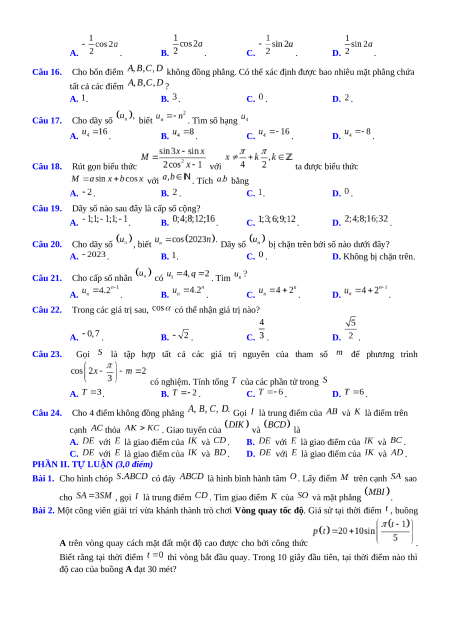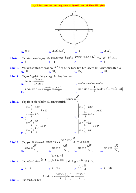 Câu 9. Cho công thức lượng giác . Tính bằng A. . B. . C. . D. .