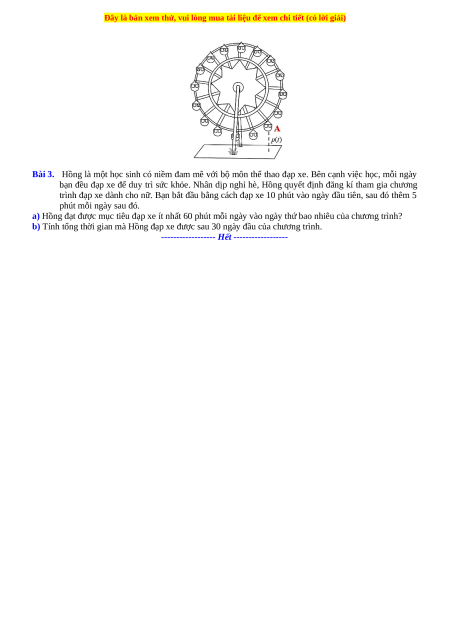 Bài 3. Hồng là một học sinh có niềm đam mê với bộ môn thể thao đạp xe. Bên cạnh việc học, mỗi ngày