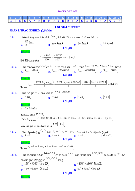 Câu 5. Cho góc lượng giác có số đo là , góc lượng giác có số đo là . Số đo của góc lượng giác bằng A. . B. . C. . D. .