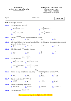 TRƯỜNG THPT NGUYỄN TRÃI NĂM HỌC 2023 - 2024 MÔN TOÁN - KHỐI 11