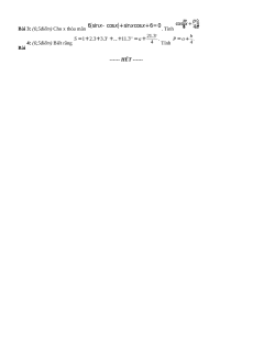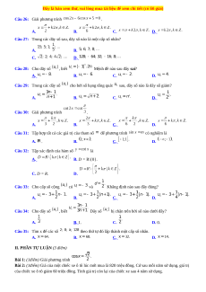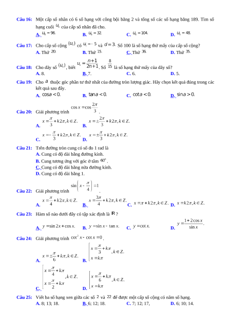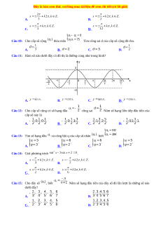 q của cấp số nhân đã cho. A. B. C. D. Câu 4: Đổi số đo của góc sang đơn vị radian. A. B. C. D. Câu 5: Giải phương trình . A. B. C. D. Câu 6: