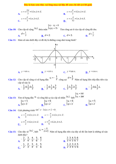 Câu 14: Giải phương trình . A. B. C. D. Câu 15: Cho dãy số , biết
