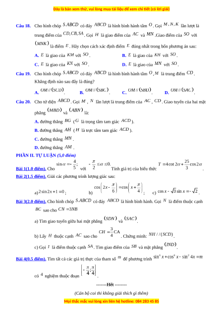 Câu 17. Cho hình chóp có đáy là hình bình hành. Gọi