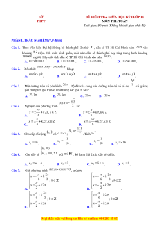 ĐỀ KIỂM TRA GIỮA HỌC KỲ I LỚP 11 THPT MÔN THI: TOÁN